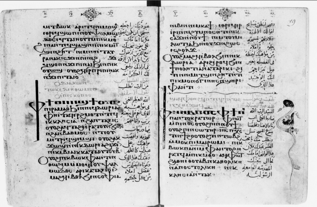 “That which ought to be read/prayed for the consecration of the chanter (الابسلموطس) who is the reader (الاغنسطس) is completed with peace from God, and praise be to God at all times and forever…” Seems to be a confusion or intermingling of these orders at the time/place of this transcription.