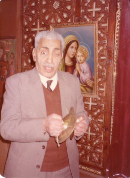 Dn. Ibrahim Ayad as a young lad receiving the relics of our apostle, St. Mark